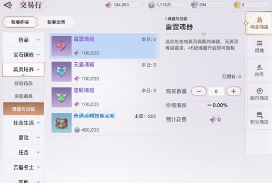 需要每天消耗(200w左右云卷)作为投资,打开商会商店-魂器与技能每天每种魂器只能买10个,技能数量为1-2,有几率出高级技能。