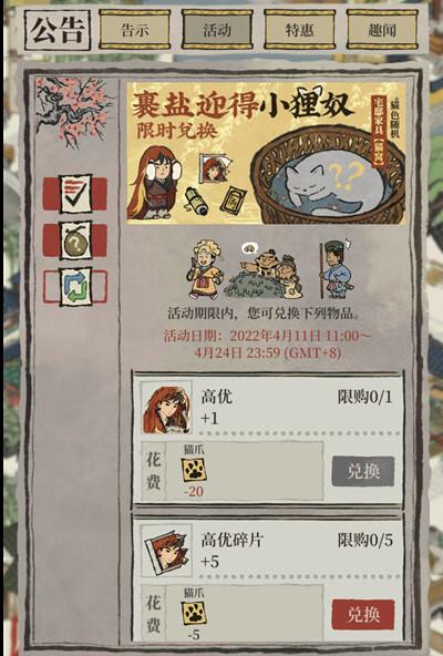 -【裹盐迎得小狸奴】限时兑换活动开启;