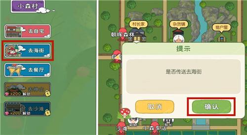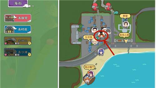 第一步:在世界地图左侧,花费100金贝壳解锁海街地图,直接传送过去。