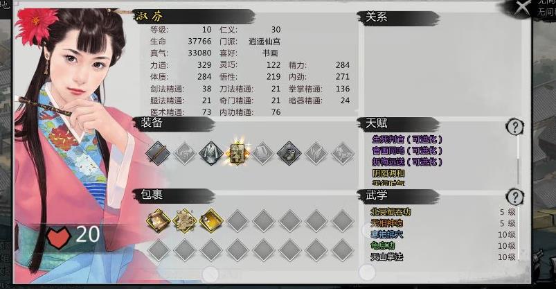 点击右侧的观察,通过观察我可以清楚的看到她的喜好是书画,我们找书画这类材料送礼给她,其送她喜好的材料,就会增加好感度。