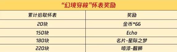 战士们只要在2021年2月22日至2021年3月7日期间内,参与“幻境穿梭”主题活动,在任意模式中淘汰1名敌人即可得到1块怀表,累计收获150块怀表,即可解锁新枪Echo哦。