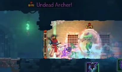 比如上图,对一个弓箭手扔手雷后,从它身上弹出一个紫色的东西,这就是图纸提取器,说明这个怪身上有图纸,然后他就变成精英怪了。