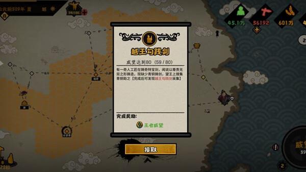 1、越王勾践剑:威望达到80。