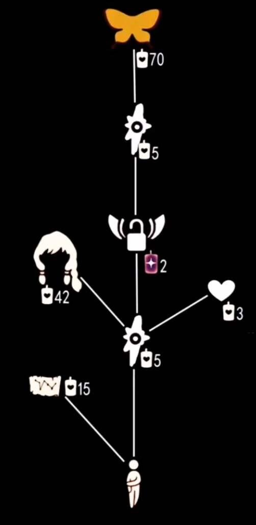 2、先祖带来的道具包含蝴蝶斗篷、长辫发型、一款站姿动作,兑换列表可以参考下图所示,兑换所有物品需要花费140个蜡烛,3个爱心;