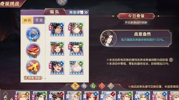 三国志幻想大陆初心未改奇策挑战阵容搭配攻略