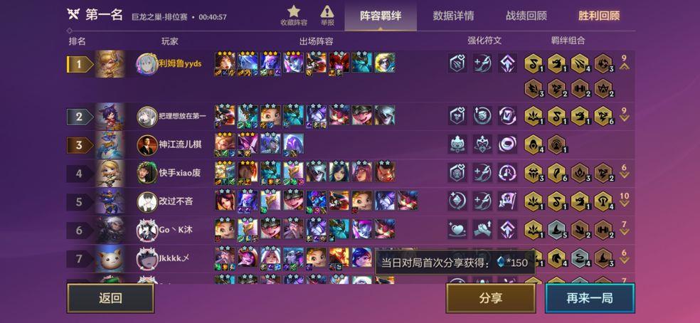 射手上分阵容。前期拿塔姆打工,因为塔姆很肉,然后凑3星界龙,看情况d牌。