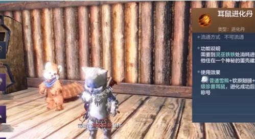 其中陨铁在陨石处开采获得,火烜角可以去打八千年石烜及万年冰烜火烜概率获取。灵狐毛皮打五千年丘狐,八千年玉狐,万年凛狐火狐概率获得。收集这些材料合成进化丹后,就能去找灵巫铁铁进化耳鼠了,非常呆萌。