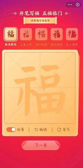 2、然后选择你喜欢的字体,来写福字,能打开临摹哦!让你的福字写的更加美观。