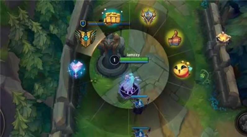 2、作战时长按英雄,出现表情包转盘,点击狗牌就可以亮起来了。
