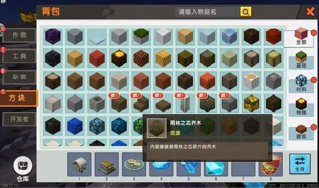 想要制作这个道具的第一步就是有雨林之芯乔木,在得到了数量足够的雨林之芯乔木之后,就可以合成雨林之芯碎片了。
