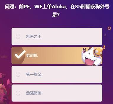 英雄联盟手游前PEWE上单Aluka在S5时期获称外号是答案是什么