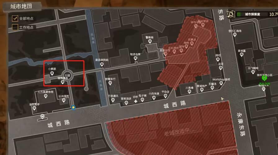 1、在游戏中很多玩家都有可能进入抑郁状态,玩家可以到公园(如下图红框)。