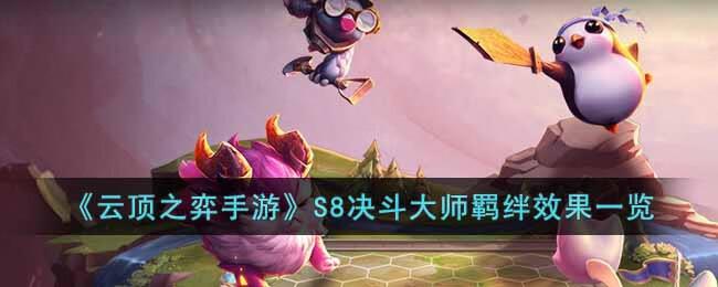 云顶之弈第八赛季“云顶之弈怪兽来袭”即将到来,可能很多小伙伴好奇云顶之弈决斗大师羁绊有什么效果,小小编小编接下来就给大家带来云顶之弈手游决斗大师羁绊的效果一览,对此有需求的小伙伴们可以仔细参考一下攻略内容,希望对大家有所帮助。
