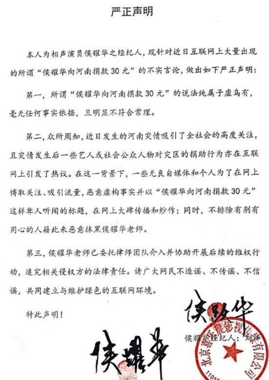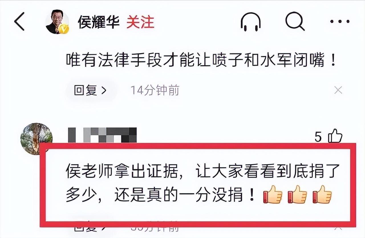 面对一众的叫骂,侯耀华也是紧急辟谣,最终证实这确实不是他本人的捐款。