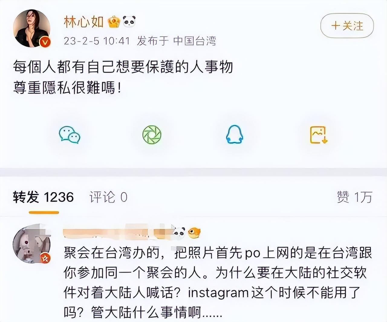 可她在台湾庆生,她的朋友发布的台湾社交平台,她却跑到大陆的社交平台上一顿抱怨。