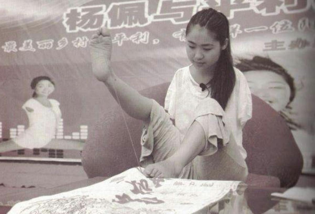 由于之前练习过舞蹈的缘故,杨佩的身体保留了一定的柔韧性,这样的优势,让她逐渐开始尝试用双脚代替双手,开启自己正常的生活。