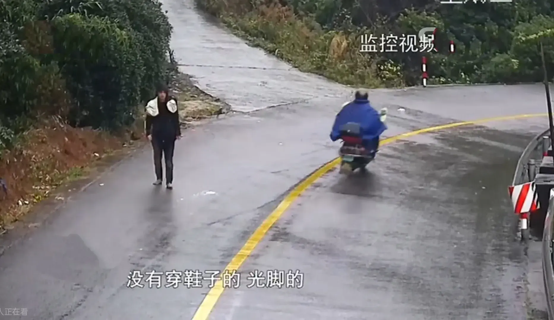 半天之后,负责视频监控的民警有了重大发现,他们发现有一名衣衫不整的男子从山上走下来,连鞋子也没穿,一路踉踉跄跄地往山下走去。