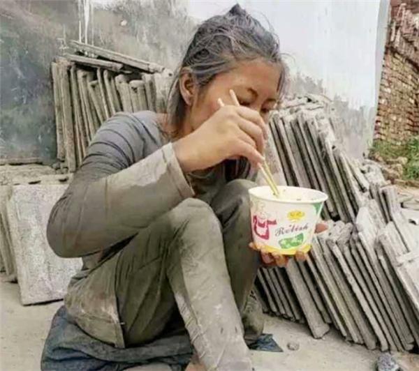 水泥妹边扛水泥边说:“老公患癌住院,我得挣钱为他治病啊。”当她将水泥放到地上后,特意用手抹了抹脸,她说到:“每天大概要扛30吨,累也没办法,都是为了生计。”