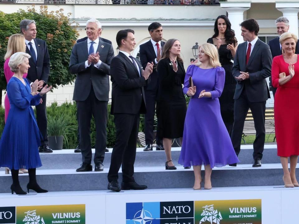 2023年7月11日晚,北约成员国的首脑们在立陶宛首都维尔纽斯出席了北约峰会的晚宴之前,集体合影留念。与之前合影相比,这张合影更加壮观,因为不仅有北约成员国的首脑,还有北约特邀嘉宾国的领导人,其中一些人还带着他们的配偶。例如,法国总统埃马纽埃尔·马克龙带着他70岁的妻子布里吉特,这位女士备受许多人的羡慕。