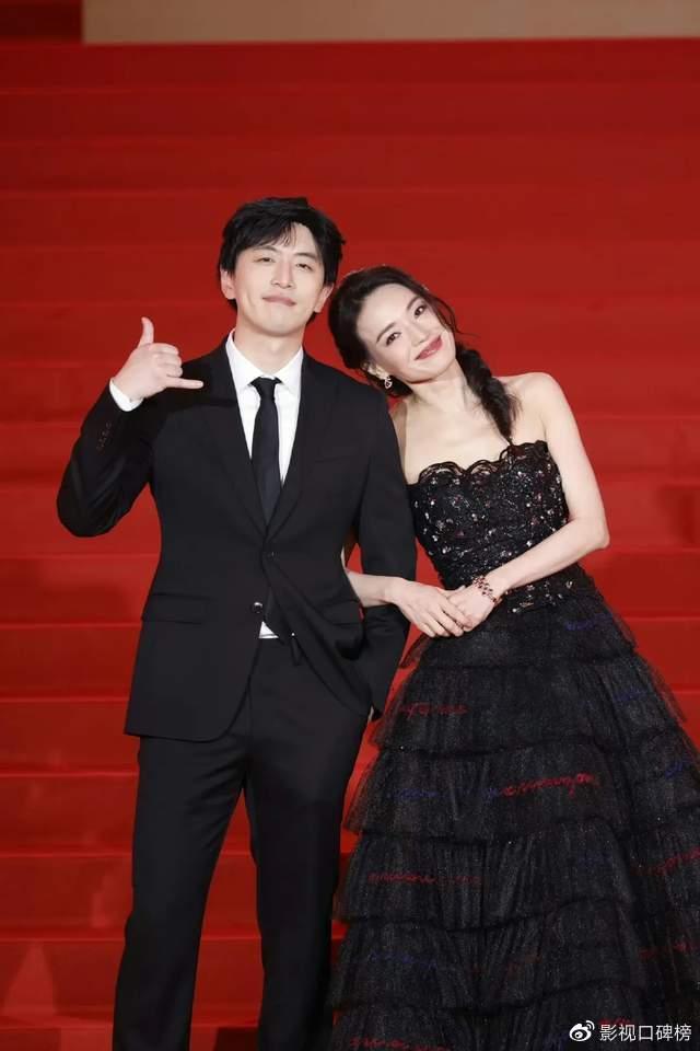 而且,他不光是在红毯上走了三次,其中一次跟舒淇一同走这条红毯时,舒淇在合照时搂住了白客的胳膊,轻轻地靠在了他的肩膀上,白客非常轻松开心地比了一个六的手势。
