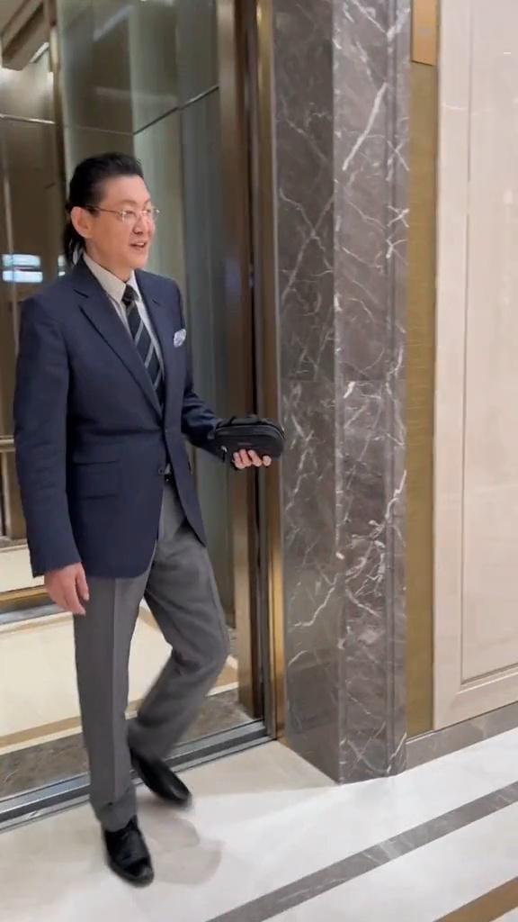 第二位走进来的嘉宾西装革履,留着时尚的中长发,还绑着一个小马尾,戴着金框眼镜,很多网友称,第一眼根本没看出来是谁。
