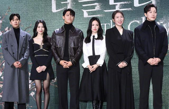 可能这就是韩娱圈的穿搭传统吧,宋慧乔与剧组同事都是“黑白双煞”的穿搭色调,视觉上很显压抑感,或许这样更配合新作主题。这次现身宣传活动的宋慧乔又有很大变化,尤其是这张合照中,乍一看很难认出宋慧乔本人。主要是头型上已由原来清爽的中短发,回归到这种颇具婉约气质的韩式披肩大卷。