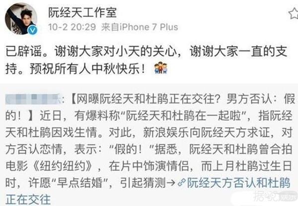 出道这么久杜鹃只传过两次绯闻,一次是合作拍戏的阮经天,一次是汤臣集团创始人的儿子汤珈铖。但是这两个绯闻都是超迅速的否认、辟谣。
