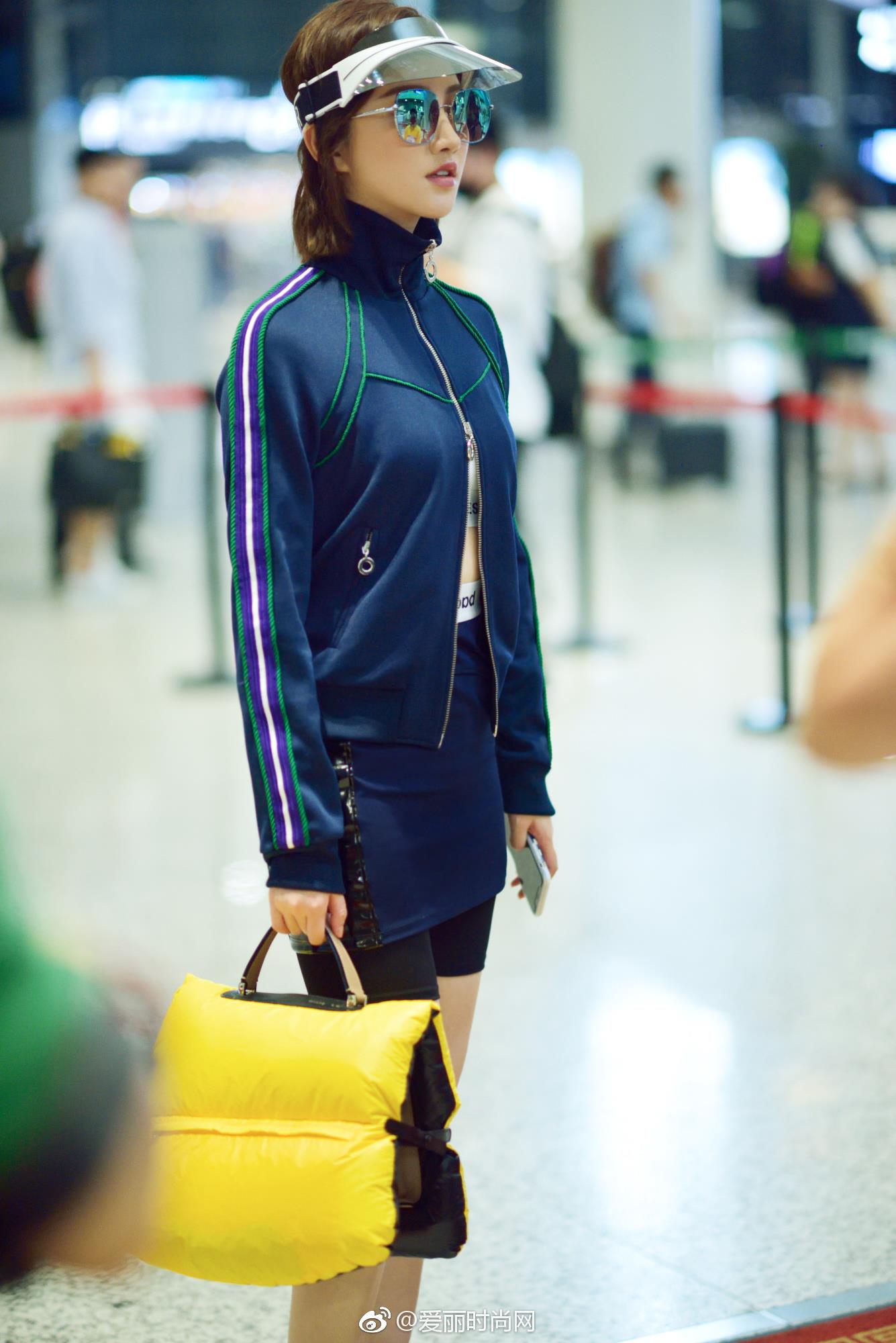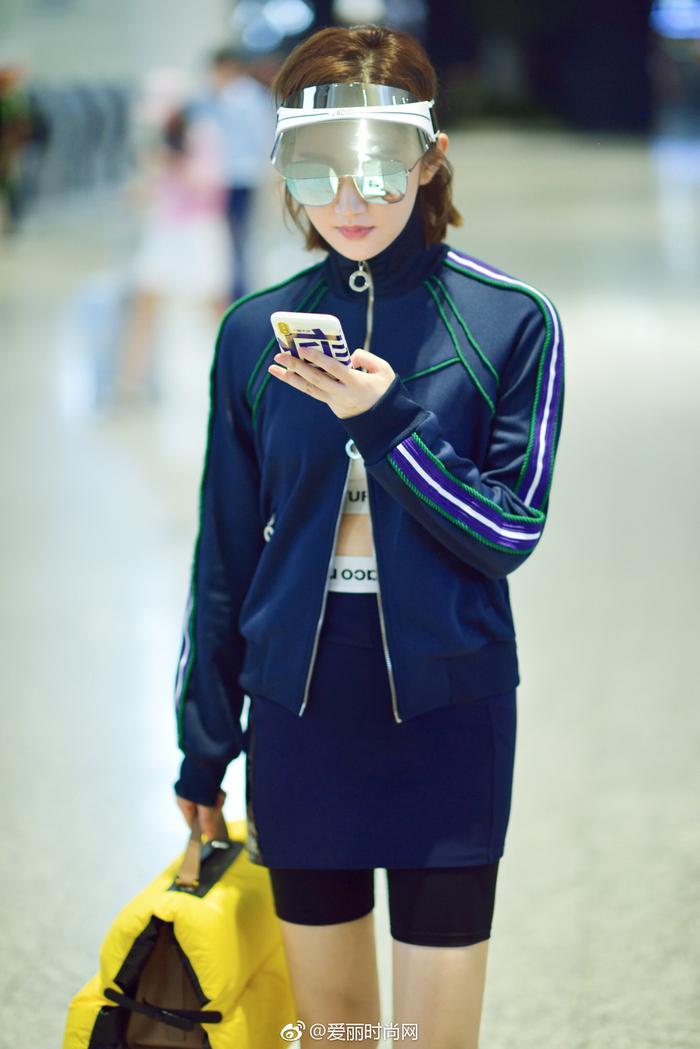 景甜现身上海机场。链式运动外套露出平坦小腹;短裤和短裙的巧妙搭配时髦又个性,大长腿尽显;防晒帽和黄色手拎包的点缀也相当抢眼。大甜甜这身运动style帅气又充满活力~外套:Pinko短裤:Paco Rabanne短裙:Paco Rabanne鞋:Chloe包:Valextra眼镜:For Arts Sake遮阳帽:Christian Dior