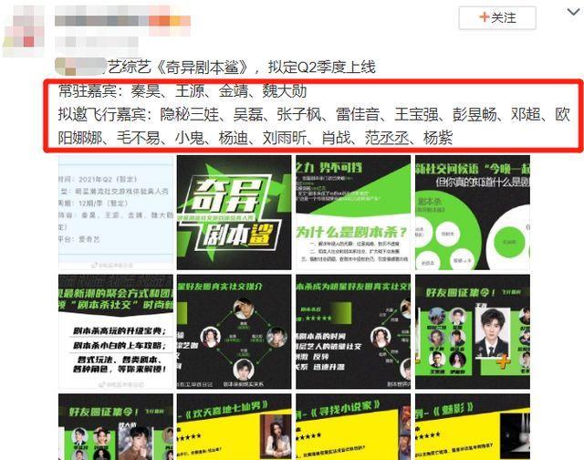 又录制了一档综艺节目,这档综艺节目就是《奇异剧本鲨》。这档综艺节目还是很有看点的,毕竟是新推出的综艺节目,想必也不会让粉丝很失望的了。