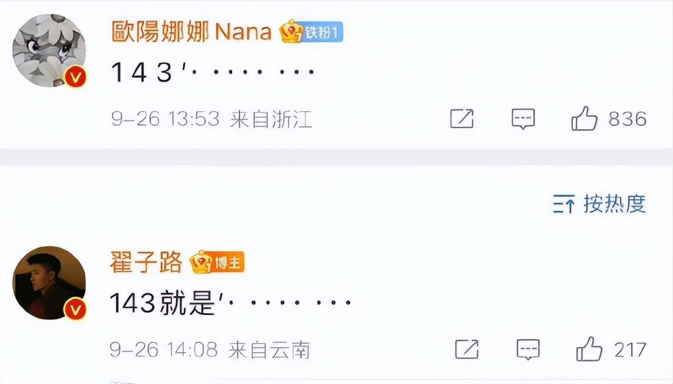 翟子路疑似因出演了欧阳娜娜的歌曲《1-4-3》MV拍摄,而与她结缘,欧阳娜娜不仅会在社交平台上晒出两人拍摄MV的花絮视频,两人还会在评论区里说一些“让人不明白”的小互动。