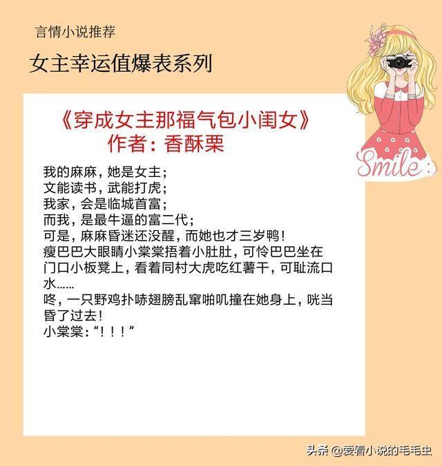 大家好,我是毛毛虫,今天给大家推荐5本女主幸运值爆表的小说,福运逆天全家宠,出嫁老公接着宠!(标题为第四本)