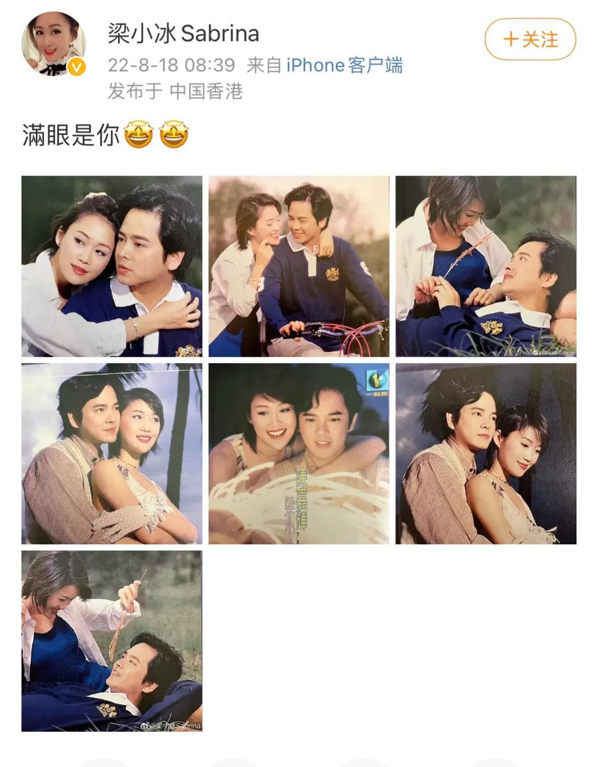 近日,梁小冰在自己的社交平台晒出一组旧照,并配文“满眼是你”,表白老公陈嘉辉。