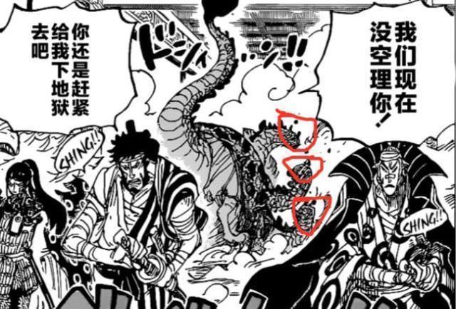 在和之国篇中黑炭大蛇是以一个阴险小人的形象示人,胆小怕事欺软怕硬也让很多海迷们十分厌恶。在和之国决战发生的时候,堂堂的一个和之国将军竟然被凯多一个锤子敲死,这样的死状实在是有点让人意想不到。不过好在大蛇拥有的是八岐大蛇幻兽种,也就意味着拥有八条命,所以当黑炭大蛇不知不觉的复活后想着找凯多复仇,谁想到他刚一出门就碰到了疗伤过后的赤鞘九侠。大蛇以为受伤的赤鞘九侠是软柿子能够随便拿捏,谁想到赤鞘九侠们直接拔刀砍了大蛇6个脑袋并直言没有时间浪费在大蛇身上。