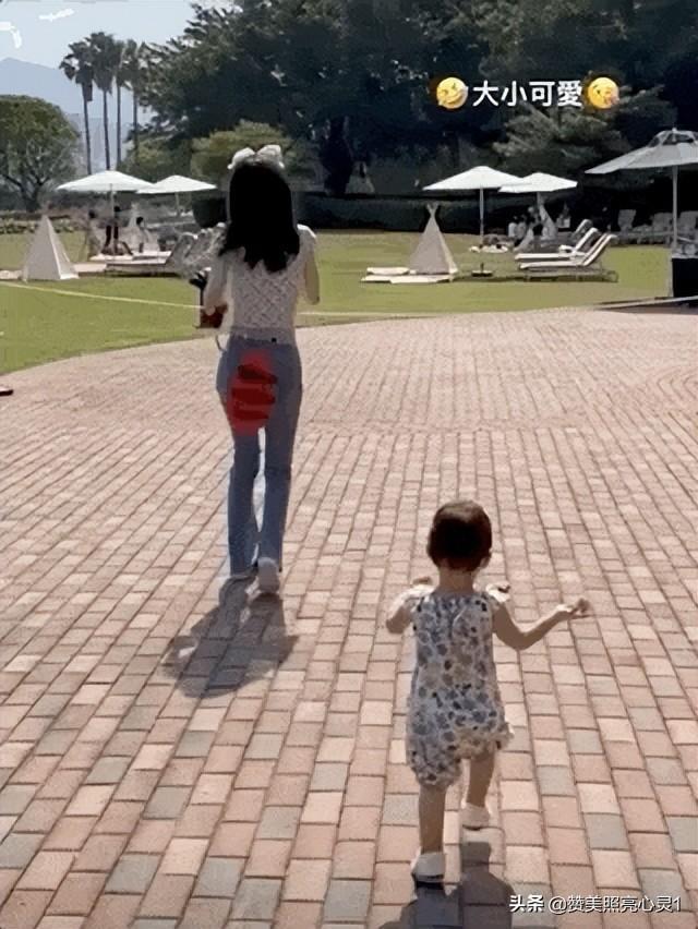 其中有一张小女儿格格的独照,小姑娘应该是遗传了妈妈的可爱基因,这么小就知道在镜头前摆出可爱的心形姿势,头上的两个小发饰更是为可爱加分。