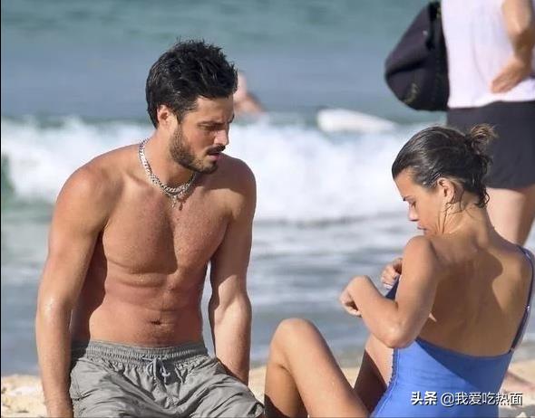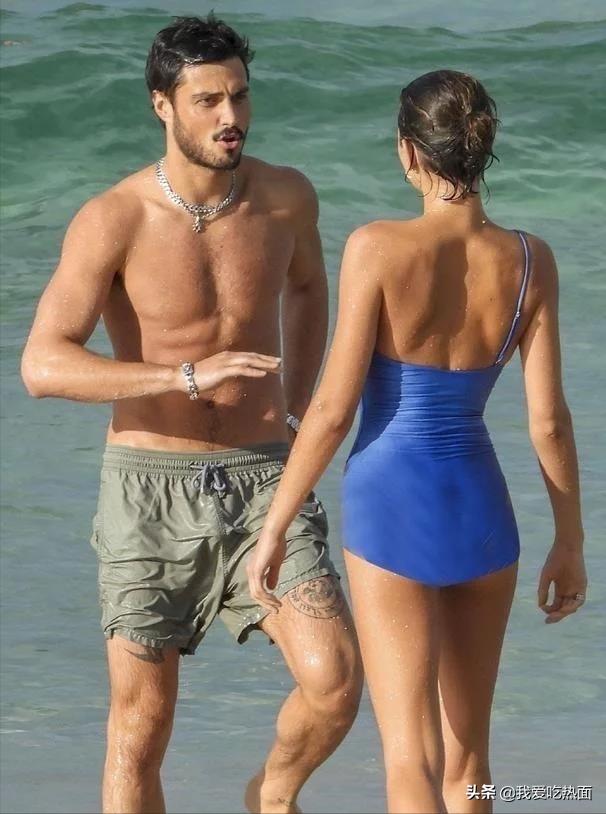 乔治娅·福勒穿蓝色单肩吊带泳装和男友秀恩爱,曲线魅力十足