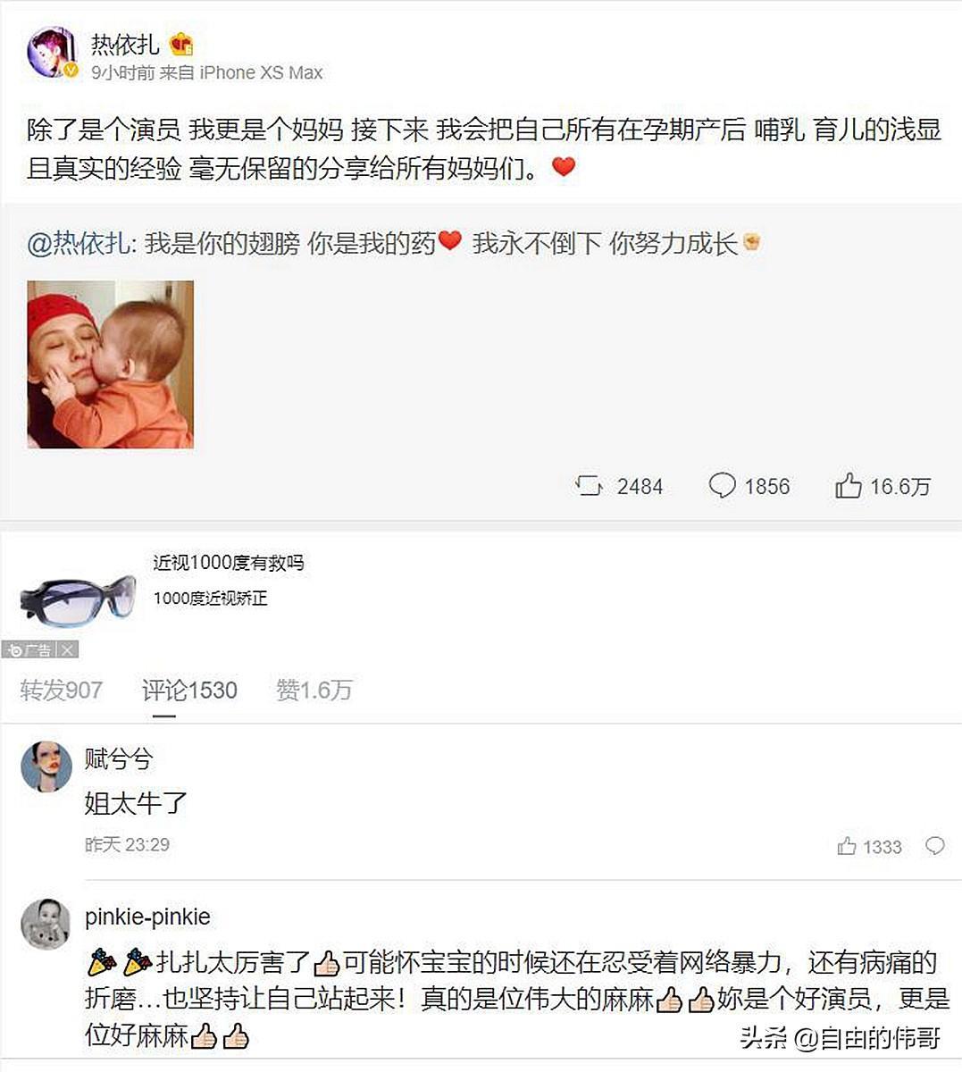 紧接着,热依扎又补充了一条信息,官宣自己当妈了,并表示她会把自己所有在孕期产后,哺乳,育儿的经验,与宝妈粉丝们分享。