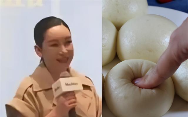 衣服和形状与普通人没有什么不同,但她的脸处于浮肿的状态,感觉就像是用发面做成的馒头。从对比图中可以看出,有毛面的馒头表面看起来很饱满,但挤压后会变得柔软。秦海璐的整张脸看起来像是裹着发面的馒头,看起来很丰满,但一捏就碎了。