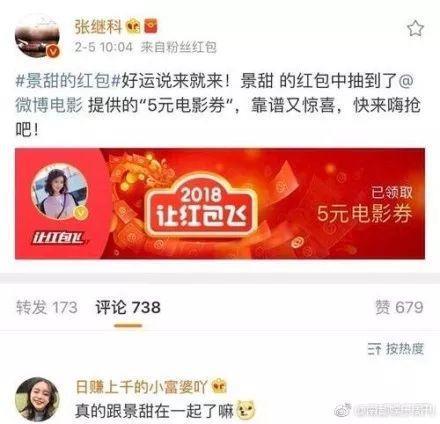 昨天,张继科还抢了景甜的红包。不少网友看到这一幕表示特别震惊,但张继科很快就删掉了这条微博。