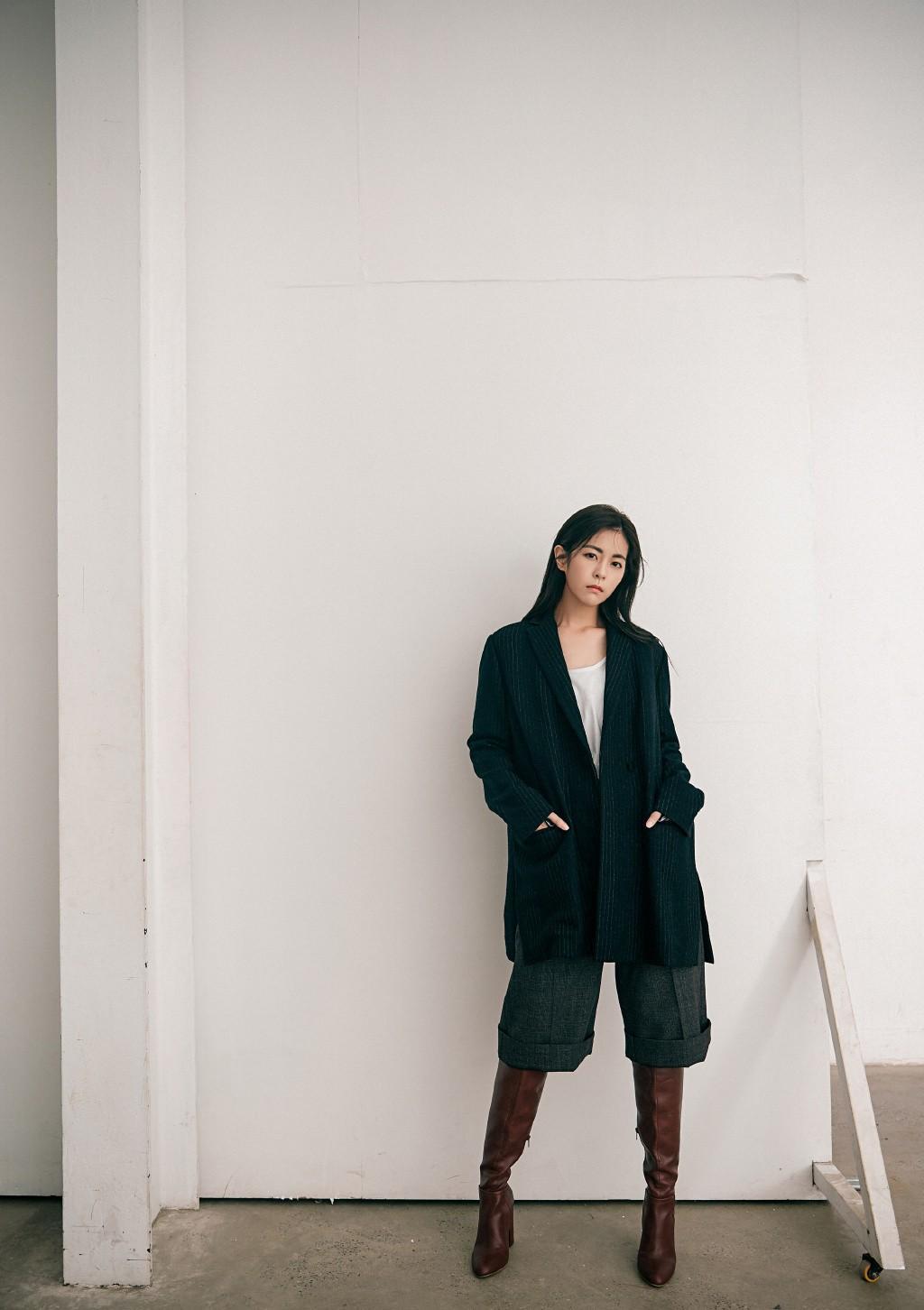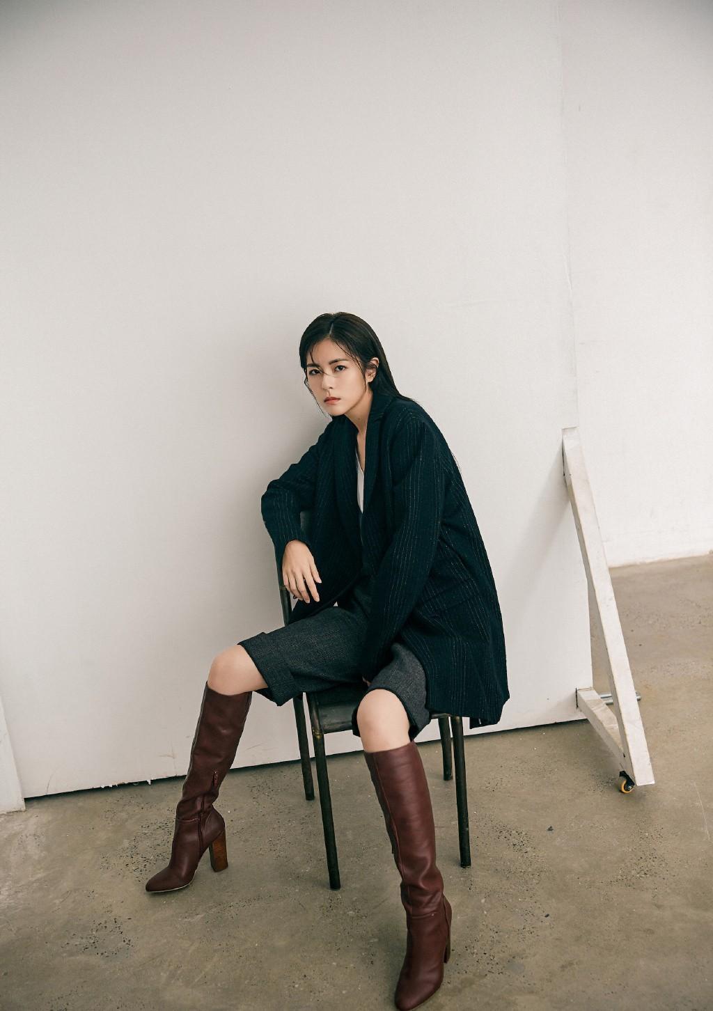 任容萱写真照曝光,穿条纹西装配短裤长筒靴,男友风搭配帅气十足