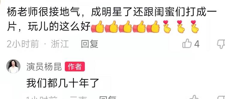 以上视频曝光之后引发网友热议,很多人都称赞杨昆太接地气,毫无明星架子,也有人说她才是德艺双馨的艺术家。