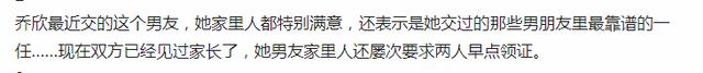 而且他们双方都已见过家长了,而这个男友也算是她交往过的男朋友里面最靠谱的,看来双方见过父母都对彼此非常满意,而且还疑似遭到了男方家长的催婚。