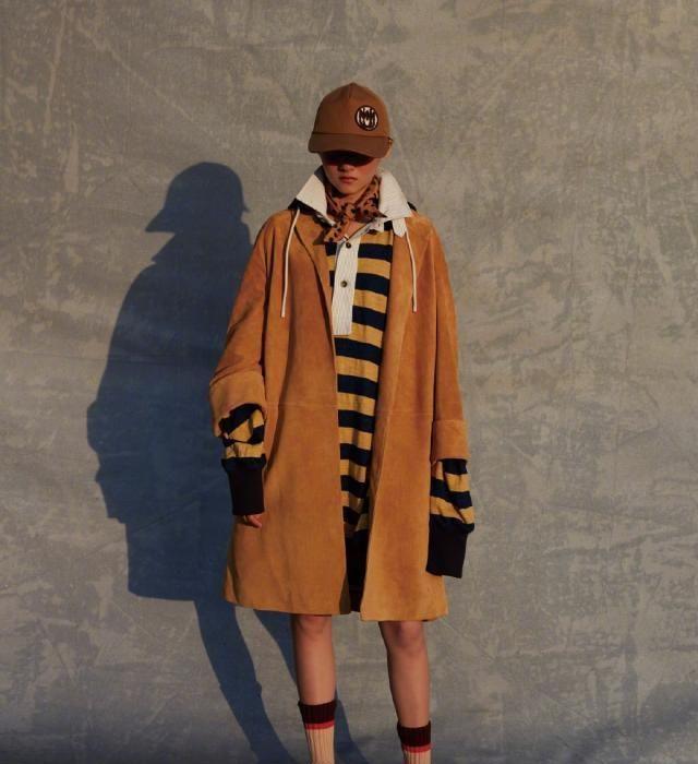 黑色、黄色、白色条纹的长卫衣也给我们留下了深刻的印象,这个长衣作为裙子穿的方法也很流行,服装作为内衣展示着流行的风格,组合是咔叽色的长外套,咔叽色演绎出女人味,通过搭配同色系的鸭舌帽,整体的穿法会显得更加精致优雅,把黑色鞋子搭配在内裤的中筒袜子上,可以提升她的气氛,这样的服装能感到独一无二的性感。