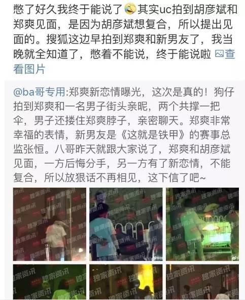 当时看见郑爽与胡彦斌分手,还说郑爽找胡彦斌复合被拒绝。当时心里就觉得不可思议,毕竟郑爽不是那种拿得起放不下的人。好在在胡彦斌说了不再相见的第二天,郑爽与张恒的恋情就被曝光了,也有人站出来说是胡彦斌相复合,只不过当时的小爽已经有啦张恒了。