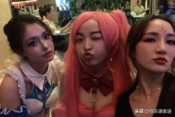 在生日派对上,林允儿和孟佳一身卡通造型,林允儿穿着一身蓝白相间的连衣裙,孟佳一身粉红色的打扮,再配上粉红色的头发真的显得可爱无比,孟佳和林允儿在派对上做出各种亲密动作,可以看出我们的孟佳和林允关系真的好。