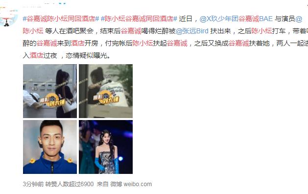 有媒体拍到谷嘉诚和陈小纭出去玩,然后深夜回酒店过夜,疑似恋情曝光。