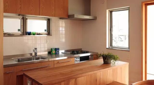 厨房是全开放式的,餐厅和厨房连在一起,空间看起来更开阔了,很像日韩电视剧的厨房,厨房比较小,选了一个品牌油烟机应该不存在油烟问题,中间用吧台隔断,其实看起来还蛮舒服的,不知道我老公为啥要吐槽呢?