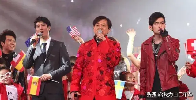 在派对的开始,就由成龙和周杰伦、王力宏一起演唱歌曲,仔细看的话他们背后还有国际知名钢琴家郎朗,不知道的还以为是什么大型的演唱会。