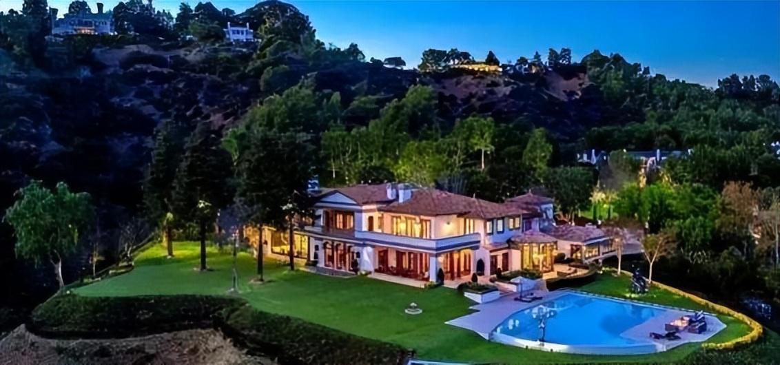 这栋豪宅占地1万4千平米,里面配套十分齐全,巨型露天泳池、桑拿室、小型电影院一应俱全。豪宅坐落于比佛利山庄,是典型的富人区,四周都是绿色环绕。