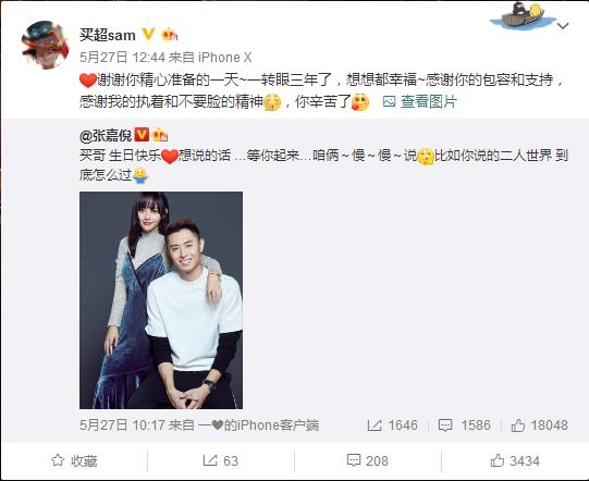 最重要的是,他还特别喜欢张嘉倪,有人找到他的微博号,发现他的日常就是夸老婆表白老婆!