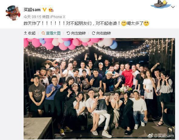 他们夫妻二人都在微博上晒出了照片庆祝,张嘉倪发了一张两人的合影,除了祝福生日快乐,还说等你起来慢慢说,这操作很甜啊。买超则在微博上晒出了当天聚会的大合照。从照片中可以看出当天来了不少朋友,他抱着老婆坐在最中间狂秀恩爱。